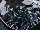 白い容器での上見では爽やかな青さが表現されているメダカです!